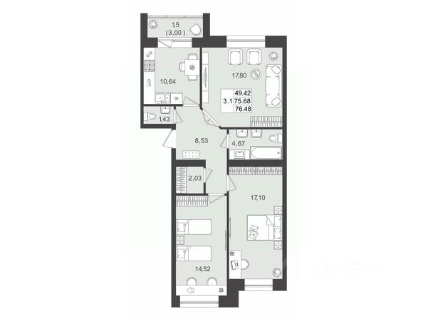В квартире остаётся кухонный гарнитур с техникой (варочная панель, духовой шкаф). В прихожей вешалка и полка для обуви. В комнате диван, два шкафа. В зале два солдатика.