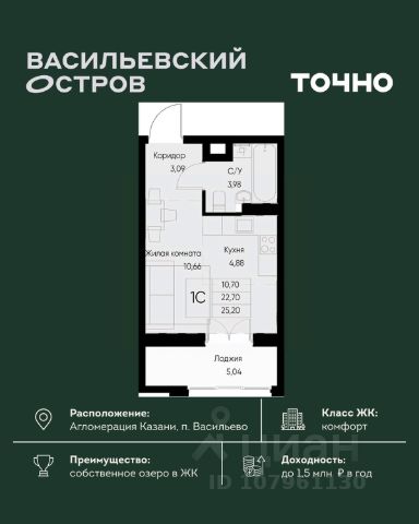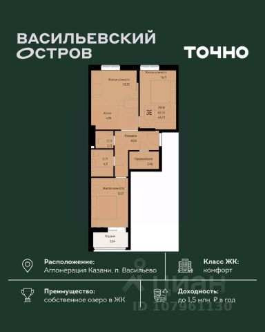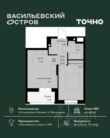 ЖК "Васильевский остров" — масштабный проект ТОЧНО в Казанской агломерации. Просторная территория 88 Га спроектирована для комфортной жизни: озеро с набережной и пляжем, каток, зелёные маршруты. В проекте комплекса — школа на 1 224 места, 2 детских сада на 680 мест, детская и взрослая поликлиники, фитнес-центр с бассейном, термальный комплекс, фермерский рынок, магазины, кафе и рестораны.