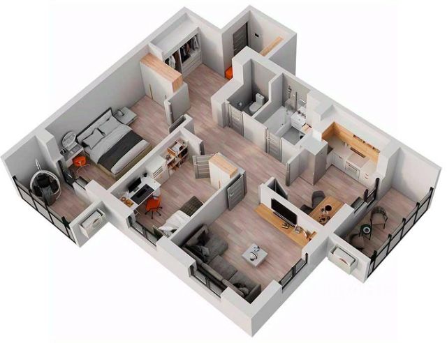 Квартира на 3 стороны света Классический формат с раздельной кухней и гостиной Просторная кухня с выходом на балкон и возможностью размещения рабочей зоны у окна Уютная гостиная для совместного досуга всей семьи Спальная с возможностью организации гардеробной Детская и комната родителей расположены в разных частях квартиры, чтобы не мешать друг другу Много света: по 2 окна в гостиной, детской и на кухне 2 вместительных санузла Ниша под шкаф в прихожей Высота потолка 2,7 м Улучшенная предчистовая отделка