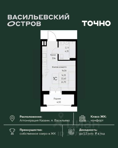 Продается квартира-студия на 2-м этаже в строящемся проекте GloraX Экосити. Общая площадь лота составляет 22,42 кв. м, из которых 11,17 кв. м отведено под жилую и 4,64 кв. м под кухонную зону. Номер квартиры - 320 Преимущества квартиры в Урбан-квартале: • Квартира с полностью чистовой отделкой. В комнатах и коридоре: - натяжной потолок, - стены оклеены обоями под покраску, - полы: ламинат, плинтусы и напольная плитки - установлены межкомнатные двери и подоконники. В санузлах: - на стенах - керамогранитная плитка и/или окраска водостойкой краской - на полу - керамогранитная плитка; - натяжной потолок - сантехника: ванна и экран под ванну/душевой поддон, унитаз, раковины и смесители, монтаж водопровода и канализации - Предусмотрен расширенный пакет системы Умный Дом: бесключевой доступ в подъезд, видеодомофон с функцией Face ID, видеонаблюдение, автоматизированный сбор и передача показаний счётчиков; - На территории Урбан-квартала предусмотрено строительство детского сада на 360 мест, школы на 1501 место, детский развивающий центр на 2000 мест. - Рядом с с кварталом Резиденции запланировано строительство детского сада на 360 мест, школы с детским развивающим центром на 1501 место - На первых этажах домов Урбан-квартала запроектированы коммерческие помещения - предусмотрены места для супермаркетов, бытовых услуг, кафе. - Собственный комьюнити-центр для жителей Урбан-квартала - Клуб Резидентов для жителей квартала Резиденции - бульвар "Река между камней" с плейхабом для детей, амфитеатром, спортивными зонами, аллеей достижений. Всем посетителям будет доступен иммерсивный маршрут и AR-игры. - Тайная тропа вдоль которой расположатся зоны тихого отдыха, йоги и медитаций - 2 смотровые площадки - Снейк-ран - Круговой спортивный маршрут - Специальные зоны для выгула собак - В Урбан-квартале предусмотрено строительство 2 многоэтажных паркингов на 300 и 360 машиномест. Всем жителям проекта доступен и привычный плоскостной паркинг вокруг территории проекта с возможностью в приложении дома получить информацию о наличии парковочных мест. - В квартале Резиденции предусмотрен подземный паркинг на 260 машиномест GloraX Экосити — это совершенство города в первозданной природе. Наполненный возможностями квартал, в котором вы не выбираете между городом или природой, семьей или работой, отдыхом или спортом, — вы берете всё сразу. Каждая семья, каким бы составом она ни жила, найдет для себя идеальное пространство. Планировочные решения разнообразны, также как и возможности отделки от черновой до полностью с ремонтом. Здесь запроектированы квартиры с просторной кухней-гостиной, чтобы семья могла комфортно проводить время вместе. Квартиры сдаются с современной качественной отделкой, что позволяет после сдачи дома сразу начать жить, избежав долгих самостоятельных ремонтов. Цветовые решения и стиль отделки можно выбрать при покупке квартиры. Резиденции сдаются в черновой отделке, вы могли реализовать ваши самые смелые дизайнерские решения. Каждая резиденци Квартира-студия до 7 млн. рублей в республике Татарстан.