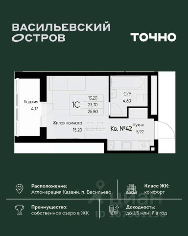 Прямая продажа от застройщика! Корпус 1.1 сдан! Жилой Комплекс комфорт-класса. Продаётся квартира-студия номер 69 общей площадью 39.8 кв.м. на 1-м этаже 6 этажного здания. Предчистовая отделка. Цена с учётом скидки. Особенности квартиры: - Линейная планировка - максимальная функциональность и удобство. - Увеличенное количество окон - дополнительное освещение и свежий воздух. - Просторная ванная - место для расслабления и уединения. - Постирочная - организуйте пространство для стирки и сушки вещей. - Увеличенная высота потолков - ощущение простора и легкости. - Гардеробная - удобство для хранения и организации вещей. - Терраса - место для загара и вечерних посиделок. Квартира с предчистовой отделкой. Вам не придется заниматься черновыми и трудоёмкими работы, а чистовую отделку и дизайн - сделайте на свой вкус. Информация о комплексе: "Форест" - жилой комплекс комфорт-класса, созданный для тех, кто ищет гармонию с природой, не отказываясь от городского ритма. Расположенный в окружении леса и реки, он воплощает мечту о загородной жизни со всеми удобствами города. Здесь можно проживать самые тёплые моменты с близкими, дышать свежим хвойным воздухом, встречать утро на собственной террасе или проводить вечера с друзьями под открытым небом. Благоустроенная территория, прогулочные дорожки и зоны отдыха создают атмосферу уюта и гармонии. Поблизости - лес и Волга, куда можно выбраться на прогулку в любое время, не дожидаясь выходных. Благодаря вечнозелёным растениям и продуманному озеленению, дворы остаются зелёными круглый год. Транспортная доступность: - 4 мин. пушком до автобусной остановки - 5 мин. на машине до школы Внутренняя инфраструктура: Продуманное пространство для жизни, отдыха и развития. На территории комплекса работает собственный детский сад - современное и безопасное пространство, где дети всегда рядом с родителями. Во дворе установлены игровые комплексы для активных прогулок и развития малышей на свежем воздухе. Жителям доступны кафе и магазины, площадки для прогулок с питомцами, зоны для пикников и барбекю. Для любителей активного образа жизни предусмотрены велодорожки, воркаут-зоны и тропы для хайкинга, а в шаговой доступности находятся планетарий и глэмпинг. Просторный двор без машин и закрытая территория с системой контроля доступа обеспечивают высокий уровень безопасности и приватности. Здесь можно по-настоящему расслабиться и чувствовать себя дома - в окружении природы, комфорта и заботы о каждом дне.