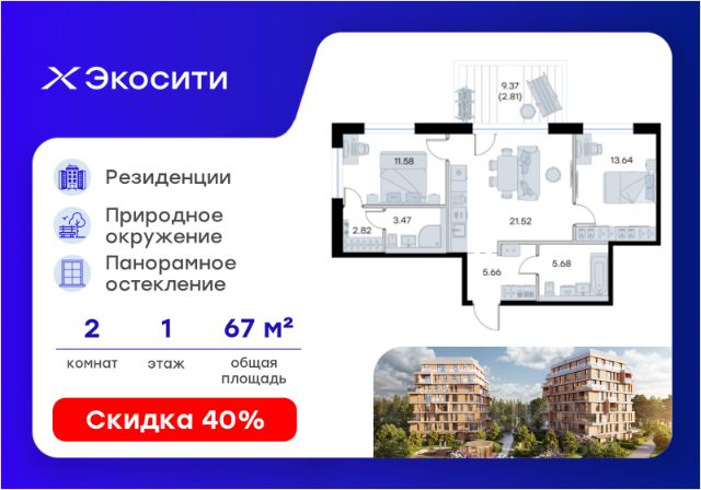 Продается 2-комн. квартира на 1-м этаже в строящемся проекте Экосити. Общая площадь лота составляет 67,18 кв. м, из которых 25,22 кв. м отведено под жилую и 21,52 кв. м под кухонную зону. Номер квартиры - 94 Преимущества резиденции в квартале "Резиденции": - перегородки межкомнатные перегородки в 1 кирпич, в С/У в 2 кирпича с заведением гидроизоляции на 20 см - потолки - без отделки - полы в помещениях: жилые комнаты, гардеробная, коридор, прихожая, кухня - шумоизоляция пола, стяжка -полы во влажных помещениях - гидроизоляция, стяжка -водоснабжение -ввод ХВС, ГВС, канализации в ближайший СУ/в квартиру - электрический щит - временный, при входе в квартиру - отопление - горизонтальная разводка в полу с установкой - входная дверь - металлическая входная дверь с декоративной накладкой - На территории Урбан-квартала предусмотрено строительство детского сада на 360 мест, школы на 1501 место, детский развивающий центр на 2000 мест. - Рядом с с кварталом Резиденции запланировано строительство детского сада на 360 мест, школы с детским развивающим центром на 1501 место - На первых этажах домов Урбан-квартала запроектированы коммерческие помещения - предусмотрены места для супермаркетов, бытовых услуг, кафе. - Собственный комьюнити-центр для жителей Урбан-квартала - Клуб Резидентов для жителей квартала Резиденции - бульвар "Река между камней" с плейхабом для детей, амфитеатром, спортивными зонами, аллеей достижений. Всем посетителям будет доступен иммерсивный маршрут и AR-игры. - Тайная тропа вдоль которой расположатся зоны тихого отдыха, йоги и медитаций - 2 смотровые площадки - Снейк-ран - Круговой спортивный маршрут - Специальные зоны для выгула собак - В Урбан-квартале предусмотрено строительство 2 многоэтажных паркингов на 300 и 360 машиномест. Всем жителям проекта доступен и привычный плоскостной паркинг вокруг территории проекта с возможностью в приложении дома получить информацию о наличии парковочных мест. - В квартале Резиденции предусмотрен подземный паркинг на 260 машиномест Экосити — это совершенство города в первозданной природе. Наполненный возможностями квартал, в котором вы не выбираете между городом или природой, семьей или работой, отдыхом или спортом, — вы берете всё сразу. Каждая семья, каким бы составом она ни жила, найдет для себя идеальное пространство. Планировочные решения разнообразны, также как и возможности отделки от черновой до полностью с ремонтом. Здесь запроектированы квартиры с просторной кухней-гостиной, чтобы семья могла комфортно проводить время вместе. Резиденции сдаются в черновой отделке, вы могли реализовать ваши самые смелые дизайнерские решения. Каждая резиденция это база, на которой можно выстроить свой личный стиль. Цена указана при 100% оплате или стандартной ипотеке. Узнайте подробности в Отделе продаж.