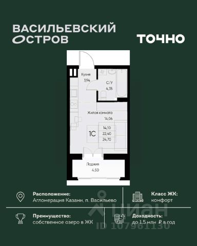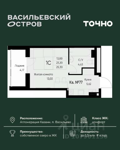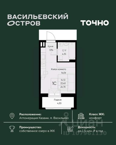 • ✓ В базе Циан 3 квартир-студий на 8 этаже в муниципальном образовании Васильево республики Татарстан