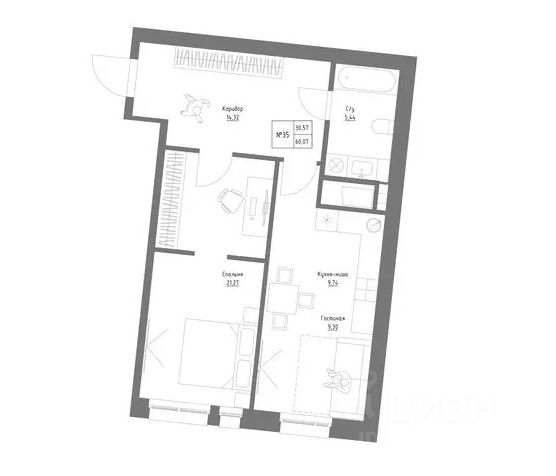В проекте отдельная спальная комната и просторная входная зона, где можно не только разместить шкаф-купе и удобные придверные пуфы, но и воплотить любые дизайнерские задумки.