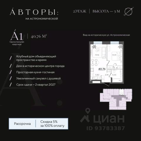 Продается 1-комнатная квартира 6 площадью 48,76 кв.м на 2 этаже проекта "Дом на Исхаки" от "Ак Барс Дом". Купить квартиру можно в ипотеку со ставкой от 4,5%.
