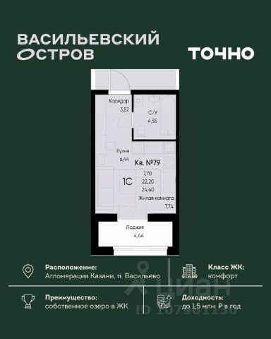 ЖК "Васильевский остров" — масштабный проект ТОЧНО в Казанской агломерации. Просторная территория 88 Га спроектирована для комфортной жизни: озеро с набережной и пляжем, каток, зелёные маршруты. В проекте комплекса — школа на 1 224 места, 2 детских сада на 680 мест, детская и взрослая поликлиники, фитнес-центр с бассейном, термальный комплекс, фермерский рынок, магазины, кафе и рестораны.