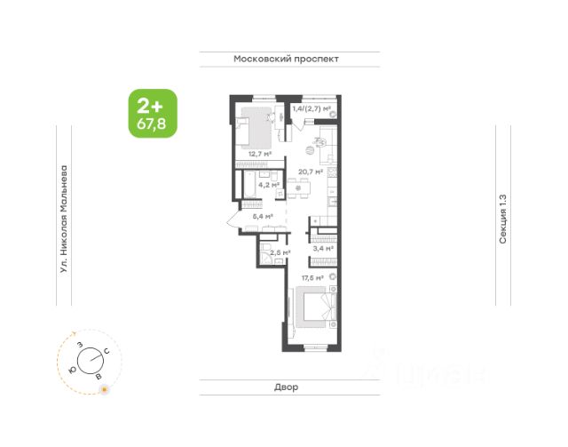 Уникальный формат Функциональная квартира на 2 стороны света Светлая увеличенная кухня-гостиная с 2 окнами и французским балконом на ряде этажей Комфортная спальня с выходом на балкон для дополнительного шумоподавления звуков улицы Просторная ванная комната правильной формы с нишей для стиральной машины Высота потолка 2,7 м Улучшенная предчистовая отделка
