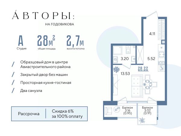 Продается квартира-студия на 8-м этаже в квартале бизнес-класса GloraX Урицкого. Общая площадь лота составляет 28,99 кв. м, из которых 14,22 кв. м отведено под жилую и 6,35 кв. м под кухонную зону. Номер квартиры - 59 GloraX Урицкого это идеальное сочетание динамики мегаполиса и камерности района, где каждое утро начинается легко, а каждый вечер наполнен ощущением дома Преимущества квартиры: cтудия; высокий этаж; вид на улицу. Преимущества, которые изменят вашу жизнь: • Собственная инфраструктура: Всё для комфорта и досуга, не выходя за территорию проекта • Безопасность 24/7: Закрытая территория, видеонаблюдение, система "Умный дом" • Безбарьерная среда: Забота о каждом жителе, независимо от возраста • Футуристичные лобби: Эстетика и комфорт с первых шагов в вашем доме. • Колясочные в каждой секции: Больше пространства в ваших квартирах • Квартиры в отделке White Box: Готовый холст для реализации дизайнерских идей. • Благоустройство в стиле лесопарка: эко-пространство, где природа становится частью повседневной жизни. GloraX Урицкого это проект бизнес-класса для тех, кто живёт в ритме большого города, но ждёт безмятежности у себя дома. Здесь всё важное происходит рядом с вами: работа, встречи, спортивные и культурные активности, прогулки, образование и обучение. Здесь вы ощутите, что вы наконец-то дома — в доме, которого давно ждали. Стоимость действительна при 100% оплате или стандартной ипотеке.