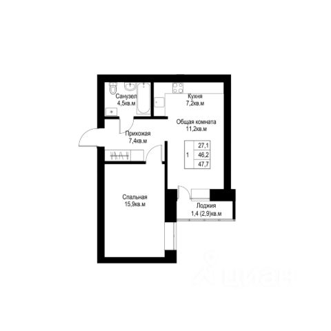 Кухня-гостиная оптимальной площади с выходом на лоджию Эргономичная спальня и детская правильной формы Ванная комната и дополнительный санузел для комфорта семьи Высота потолка 2,73 м Улучшенная предчистовая отделка 5 квартир на этаже