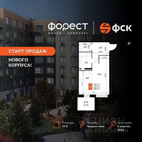 Продается квартира-студия на 4-м этаже в строящемся проекте GloraX Экосити. Общая площадь лота составляет 21,36 кв. м, из которых 13,33 кв. м отведено под жилую и 1,65 кв. м под кухонную зону. Номер квартиры - 142 Преимущества квартиры: • Квартира с полностью чистовой отделкой. В комнатах и коридоре: - натяжной потолок, - стены оклеены обоями под покраску, - полы: ламинат, плинтусы и напольная плитки - установлены межкомнатные двери и подоконники. В санузлах: - на стенах - керамогранитная плитка и/или окраска водостойкой краской - на полу - керамогранитная плитка; - натяжной потолок - сантехника: ванна и экран под ванну/душевой поддон, унитаз, раковины и смесители, монтаж водопровода и канализации - Предусмотрен расширенный пакет системы Умный Дом: бесключевой доступ в подъезд, видеодомофон с функцией Face ID, видеонаблюдение, автоматизированный сбор и передача показаний счётчиков; - Внутренние дворы каждого урбан-блока закрытые, благоустройство по индивидуальному проекту. - На территории квартала предусмотрено строительство детского сада на 360 мест, школы на 1501 место, ДОУ на 2000 мест. - На первых этажах домов запроектированы коммерческие помещения - предусмотрены места для супермаркетов, бытовых услуг, кафе. - Собственный комьюнити-центр для жителей жилого комплекса - бульвар "Река между камней" с плейхабом для детей, амфитеатром, спортивными зонами, аллеей достижений. Всем посетителям будет доступен иммерсивный маршрут и AR-игры. - лесная прогулочная аллея вдоль которой расположатся зоны тихого отдыха, йоги и медитаций - 2 смотровые площадки - специальная зона для выгула собак - В жилом комплексе предусмотрено строительство 2 многоэтажных паркингов на 300 и 360 машиномест. Всем жителям проекта доступен и привычный плоскостной паркинг вокруг территории проекта с возможностью в приложении дома получить информацию о наличии парковочных мест. GloraX Экосити — это совершенство города в первозданной природе. Наполненный возможностями район, в котором вы не выбираете между городом или природой, семьей или работой, отдыхом или спортом, — вы берете всё сразу. Каждая семья, каким бы составом она ни жила, найдет для себя идеальное пространство. Планировочные решения запроектированы с просторной кухней-гостиной, чтобы семья могла комфортно проводить время вместе. В целях безопасности в детских комнатах отсутствуют балконы и лоджии. Квартиры сдаются с современной качественной отделкой, что позволяет после сдачи дома сразу начать жить, избежав долгих самостоятельных ремонтов. Цветовые решения и стиль отделки можно выбрать при покупке квартиры. Цена указана при 100% оплате или стандартной ипотеке. Узнайте подробности в Отделе продаж.