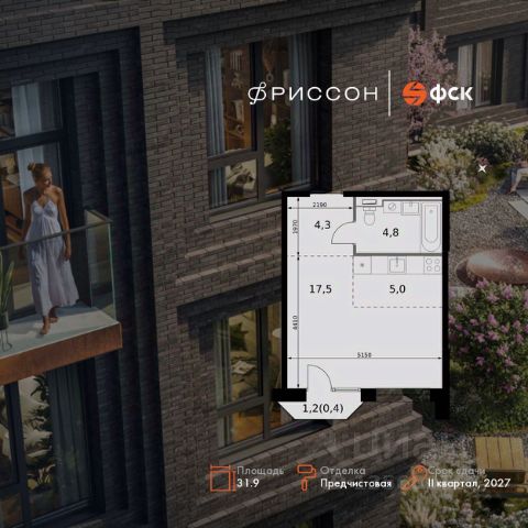 Продаётся квартира-студия номер 40 общей площадью 31.9 кв.м. на 8-м этаже 20 этажного здания. Предчистовая отделка. Цена с учётом скидки.
