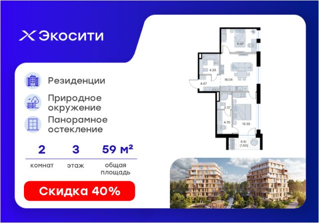 Продается 2-комн. квартира на 3-м этаже в строящемся проекте Экосити. Общая площадь лота составляет 59,76 кв. м, из которых 24,40 кв. м отведено под жилую и 18,04 кв. м под кухонную зону. Номер квартиры - 218 Преимущества резиденции в квартале "Резиденции": - перегородки межкомнатные перегородки в 1 кирпич, в С/У в 2 кирпича с заведением гидроизоляции на 20 см - потолки - без отделки - полы в помещениях: жилые комнаты, гардеробная, коридор, прихожая, кухня - шумоизоляция пола, стяжка -полы во влажных помещениях - гидроизоляция, стяжка -водоснабжение -ввод ХВС, ГВС, канализации в ближайший СУ/в квартиру - электрический щит - временный, при входе в квартиру - отопление - горизонтальная разводка в полу с установкой - входная дверь - металлическая входная дверь с декоративной накладкой - На территории Урбан-квартала предусмотрено строительство детского сада на 360 мест, школы на 1501 место, детский развивающий центр на 2000 мест. - Рядом с с кварталом Резиденции запланировано строительство детского сада на 360 мест, школы с детским развивающим центром на 1501 место - На первых этажах домов Урбан-квартала запроектированы коммерческие помещения - предусмотрены места для супермаркетов, бытовых услуг, кафе. - Собственный комьюнити-центр для жителей Урбан-квартала - Клуб Резидентов для жителей квартала Резиденции - бульвар "Река между камней" с плейхабом для детей, амфитеатром, спортивными зонами, аллеей достижений. Всем посетителям будет доступен иммерсивный маршрут и AR-игры. - Тайная тропа вдоль которой расположатся зоны тихого отдыха, йоги и медитаций - 2 смотровые площадки - Снейк-ран - Круговой спортивный маршрут - Специальные зоны для выгула собак - В Урбан-квартале предусмотрено строительство 2 многоэтажных паркингов на 300 и 360 машиномест. Всем жителям проекта доступен и привычный плоскостной паркинг вокруг территории проекта с возможностью в приложении дома получить информацию о наличии парковочных мест. - В квартале Резиденции предусмотрен подземный паркинг на 260 машиномест Экосити — это совершенство города в первозданной природе. Наполненный возможностями квартал, в котором вы не выбираете между городом или природой, семьей или работой, отдыхом или спортом, — вы берете всё сразу. Каждая семья, каким бы составом она ни жила, найдет для себя идеальное пространство. Планировочные решения разнообразны, также как и возможности отделки от черновой до полностью с ремонтом. Здесь запроектированы квартиры с просторной кухней-гостиной, чтобы семья могла комфортно проводить время вместе. Резиденции сдаются в черновой отделке, вы могли реализовать ваши самые смелые дизайнерские решения. Каждая резиденция это база, на которой можно выстроить свой личный стиль. Цена указана при 100% оплате или стандартной ипотеке. Узнайте подробности в Отделе продаж.