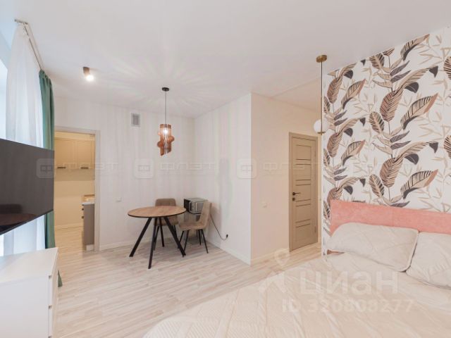 Просторная, наполненная светом гостиная совмещенная с кухней, вместительная гардеробная и великолепный санузел. Уютная спальная комната выполнена в спокойных тонах, что создает атмосферу отдыха и комфорта.