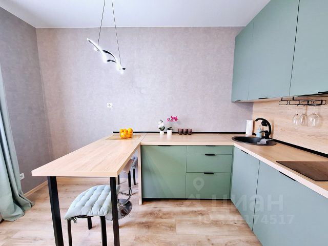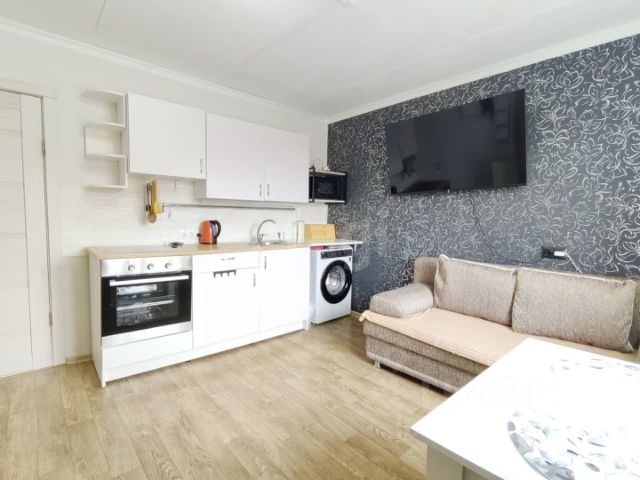 Остаётся вся мебель и техника — кухня, шкаф для хранения, спальное место, диван, холодильник, стиральная машина, телевизор, индукционная плита с вытяжкой. Заезжай и живи!