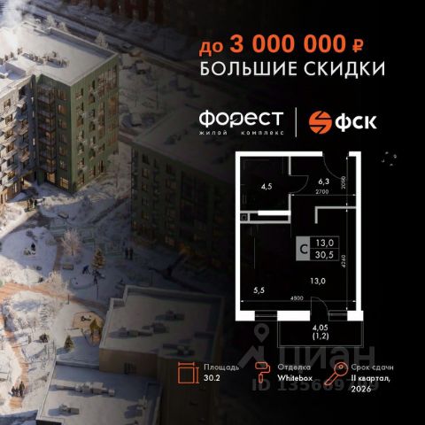 Прямая продажа от застройщика! Корпус 1.1 сдан! Жилой Комплекс комфорт-класса. Продаётся квартира-студия номер 62 общей площадью 26.2 кв.м. на 7-м этаже 7 этажного здания. Отделка Whitebox. Цена с учётом скидки. Особенности квартиры: - Линейная планировка - максимальная функциональность и удобство. - Увеличенное количество окон - дополнительное освещение и свежий воздух. - Лоджия - уютное место для отдыха и тишины. Квартира с предчистовой отделкой (White box). Вам не придется заниматься черновыми и трудоёмкими работы, а чистовую отделку и дизайн - сделайте на свой вкус. Информация о комплексе: "Форест" - жилой комплекс комфорт-класса, созданный для тех, кто ищет гармонию с природой, не отказываясь от городского ритма. Расположенный в окружении леса и реки, он воплощает мечту о загородной жизни со всеми удобствами города. Здесь можно проживать самые тёплые моменты с близкими, дышать свежим хвойным воздухом, встречать утро на собственной террасе или проводить вечера с друзьями под открытым небом. Благоустроенная территория, прогулочные дорожки и зоны отдыха создают атмосферу уюта и гармонии. Поблизости - лес и Волга, куда можно выбраться на прогулку в любое время, не дожидаясь выходных. Благодаря вечнозелёным растениям и продуманному озеленению, дворы остаются зелёными круглый год. Транспортная доступность: - 4 мин. пушком до автобусной остановки - 5 мин. на машине до школы Внутренняя инфраструктура: Продуманное пространство для жизни, отдыха и развития. На территории комплекса работает собственный детский сад - современное и безопасное пространство, где дети всегда рядом с родителями. Во дворе установлены игровые комплексы для активных прогулок и развития малышей на свежем воздухе. Жителям доступны кафе и магазины, площадки для прогулок с питомцами, зоны для пикников и барбекю. Для любителей активного образа жизни предусмотрены велодорожки, воркаут-зоны и тропы для хайкинга, а в шаговой доступности находятся планетарий и глэмпинг. Просторный двор без машин и закрытая территория с системой контроля доступа обеспечивают высокий уровень безопасности и приватности. Здесь можно по-настоящему расслабиться и чувствовать себя дома - в окружении природы, комфорта и заботы о каждом дне.