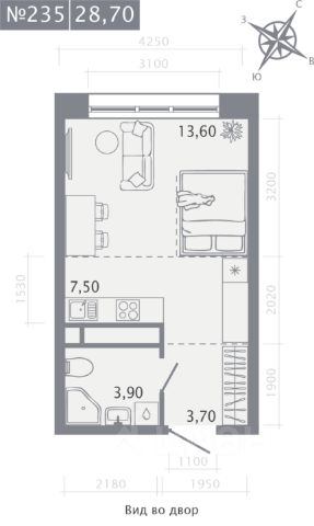 Продаётся студия в строящемся доме (Корпус 1), срок сдачи: II-кв. 2028, общей площадью 28.3 кв.м., на 20 этаже.