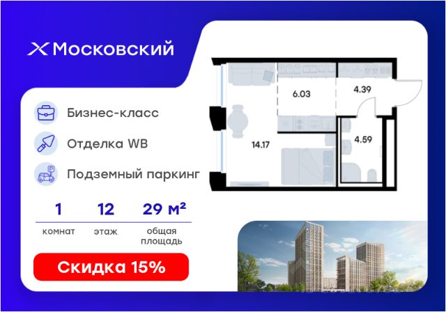 Продается квартира-студия на 4-м этаже в квартале бизнес-класса Московский. Общая площадь лота составляет 31,71 кв. м, из которых 15,84 кв. м отведено под жилую и 5,06 кв. м под кухонную зону. Номер квартиры - 275 Московский это идеальное сочетание динамики мегаполиса и камерности района, где каждое утро начинается легко, а каждый вечер наполнен ощущением дома Преимущества квартиры: cтудия; гардеробная; вид на город. Преимущества, которые изменят вашу жизнь: • Собственная инфраструктура: Всё для комфорта и досуга, не выходя за территорию проекта • Безопасность 24/7: Закрытая территория, видеонаблюдение, система "Умный дом" • Безбарьерная среда: Забота о каждом жителе, независимо от возраста • Футуристичные лобби: Эстетика и комфорт с первых шагов в вашем доме. • Колясочные в каждой секции: Больше пространства в ваших квартирах • Квартиры в отделке White Box: Готовый холст для реализации дизайнерских идей. • Благоустройство в стиле лесопарка: эко-пространство, где природа становится частью повседневной жизни. Московский это проект бизнес-класса для тех, кто живёт в ритме большого города, но ждёт безмятежности у себя дома. Здесь всё важное происходит рядом с вами: работа, встречи, спортивные и культурные активности, прогулки, образование и обучение. Здесь вы ощутите, что вы наконец-то дома — в доме, которого давно ждали. Узнайте подробности в отделе продаж!