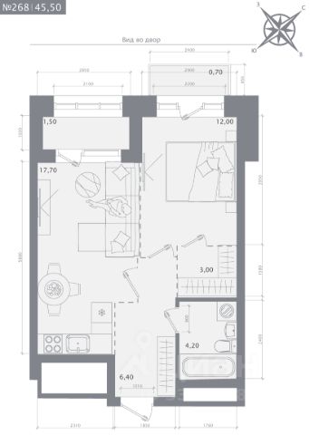 Продаётся 1-комнатная квартира в строящемся доме (Дом 2), срок сдачи: IV-кв. 2027, общей площадью 45.5 кв.м., на 7 этаже.