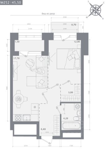 Продаётся 1-комнатная квартира в строящемся доме (Дом 1), срок сдачи: IV-кв. 2027, общей площадью 40.2 кв.м., на 16 этаже.