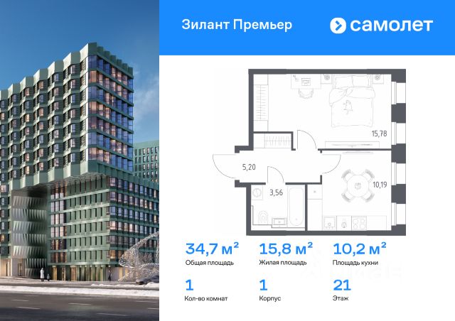 Строим кварталы для жизни с заботой о будущем. Предлагается 1-комнатная квартира комфорт-класса 34,73 кв.м в корпусе 1 на 21 этаже, в ЖК "Зилант Премьер" Квартира с предчистовой отделкой. Доступность дополнительных опций уточняйте у застройщика. Приобрести квартиру возможно по специальным акциям от застройщика, с текущими условиями акций можно ознакомиться в блоке "Акций". Цена динамическая и может отличаться, уточняйте актуальность у застройщика. Жилой комплекс "Зилант Премьер" расположен в молодом районе города. До кремля — 20 минут на авто. В получасе пешком — метро "Горки". Рядом Горкинско-Ометьевский лес, 3 школы, 2 детских сада и поликлиника, скоро откроется свой детский сад. Дома высотой от 1 до 25 этажей с фасадами, которые оживляют открытые французские балконы. В уютном дворе — детские площадки и воркаут-зона.