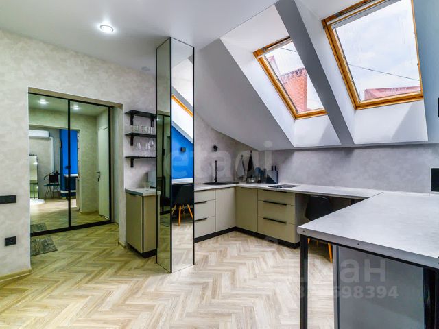 • Кухня 16,3 м² необычной трапециевидной формы, благодаря ей зона приготовления отделена от столовой зоны, создавая большое пространство для уютных семейных вечеров.