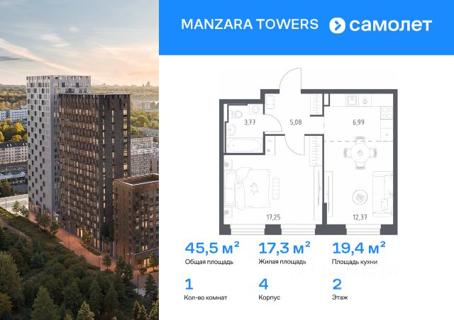 Строим кварталы для жизни с заботой о будущем. Предлагается 1-комнатная квартира комфорт-класса 35,94 кв.м в корпусе 5 на 13 этаже, в MANZARA TOWERS Квартира с черновой отделкой. Доступность опции "отделка" и возможность комплектации мебелью и декором уточняйте у застройщика. Приобрести квартиру возможно по специальным акциям от застройщика, с текущими условиями акций можно ознакомиться в блоке "Акций". Цена динамическая и может отличаться, уточняйте актуальность у застройщика. Manzara Towers — это дома высотой от 7 до 24 этажей. В увеличенных окнах с зеркальной поверхностью отражаются облака и солнечные блики. Тихий двор с игровыми площадками и воркаут-пространством идеален для прогулок с кофе. На первом этаже есть выход на стилобат, где появятся зеленые оазисы и открытые террасы. Дома соединяет между собой частично прозрачный пешеходный мост. Предусмотрены подземный и 6-этажный многоуровневый паркинги. До ж/д вокзалов можно доехать за 20 минут. Или в обеденный перерыв встретиться с друзьями в центре города — дорога на машине займет около 15 минут. На первых этажах корпусов откроется детская поликлиника, ФОК с бассейном, магазины, кафе и салоны красоты. Для маленьких жителей уже работают 3 детских сада и лицей, до которых можно дойти за 615 минут. Во всех наших корпусах входы в светлые лобби находятся на уровне земли. На первом этаже есть специальные места для хранения колясок и велосипедов.