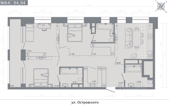 Квартира премиум класса в ЖК Август Астры с балконом , общей площадью 85 кв.м., сам балкон 4.05кв.м, большой коридор 14.82 кВ.м, 2 спальни , зал с кухней , 2 санузла , один с большой ванной 5.75кв.м , второй с душем 3.96кв.м , 2 парковки стоящие с друг-другом, одна 18,5 кВ.м, другая 16.5 кВ.м. Живем всего 1 год
