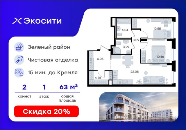 Продается 2-комн. квартира на 9-м этаже в строящемся проекте GloraX Экосити. Общая площадь лота составляет 47,80 кв. м, из которых 20,31 кв. м отведено под жилую и 14,64 кв. м под кухонную зону. Номер квартиры - 50 Преимущества квартиры: • Квартира с полностью чистовой отделкой. В комнатах и коридоре: - натяжной потолок, - стены оклеены обоями под покраску, - полы: ламинат, плинтусы и напольная плитки - установлены межкомнатные двери и подоконники. В санузлах: - на стенах - керамогранитная плитка и/или окраска водостойкой краской - на полу - керамогранитная плитка; - натяжной потолок - сантехника: ванна и экран под ванну/душевой поддон, унитаз, раковины и смесители, монтаж водопровода и канализации - Предусмотрен расширенный пакет системы Умный Дом: бесключевой доступ в подъезд, видеодомофон с функцией Face ID, видеонаблюдение, автоматизированный сбор и передача показаний счётчиков; - Внутренние дворы каждого урбан-блока закрытые, благоустройство по индивидуальному проекту. - На территории квартала предусмотрено строительство детского сада на 360 мест, школы на 1501 место, ДОУ на 2000 мест. - На первых этажах домов запроектированы коммерческие помещения - предусмотрены места для супермаркетов, бытовых услуг, кафе. - Собственный комьюнити-центр для жителей жилого комплекса - бульвар "Река между камней" с плейхабом для детей, амфитеатром, спортивными зонами, аллеей достижений. Всем посетителям будет доступен иммерсивный маршрут и AR-игры. - лесная прогулочная аллея вдоль которой расположатся зоны тихого отдыха, йоги и медитаций - 2 смотровые площадки - специальная зона для выгула собак - В жилом комплексе предусмотрено строительство 2 многоэтажных паркингов на 300 и 360 машиномест. Всем жителям проекта доступен и привычный плоскостной паркинг вокруг территории проекта с возможностью в приложении дома получить информацию о наличии парковочных мест. GloraX Экосити — это совершенство города в первозданной природе. Наполненный возможностями район, в котором вы не выбираете между городом или природой, семьей или работой, отдыхом или спортом, — вы берете всё сразу. Каждая семья, каким бы составом она ни жила, найдет для себя идеальное пространство. Планировочные решения запроектированы с просторной кухней-гостиной, чтобы семья могла комфортно проводить время вместе. В целях безопасности в детских комнатах отсутствуют балконы и лоджии. Квартиры сдаются с современной качественной отделкой, что позволяет после сдачи дома сразу начать жить, избежав долгих самостоятельных ремонтов. Цветовые решения и стиль отделки можно выбрать при покупке квартиры. Цена указана при 100% оплате или стандартной ипотеке. Узнайте подробности в Отделе продаж. Продам квартиру на улице Завокзальная в городе Казань.