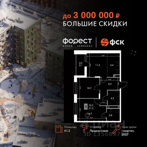 Прямая продажа от застройщика! Корпус 1.1 сдан! Жилой Комплекс комфорт-класса. Продаётся 3-к квартира номер 113 общей площадью 69.8 кв.м. на 6-м этаже 6 этажного здания. Предчистовая отделка. Цена с учётом скидки. Особенности квартиры: - Мастер-зона с санузлом и гардеробной. Всё для вашего комфорта и удобства, включая личный санузел и гардероб. - Угловая планировка - больше пространства для ваших идей. - Увеличенное количество окон - дополнительное освещение и свежий воздух. - Евроформат - просторное и удобное жилье с отличной планировкой. - Просторная кухня - место для семейных ужинов и кулинарных экспериментов. - Гардеробная - удобство для хранения и организации вещей. - Балкон - открытое пространство для отдыха. - Лоджия - уютное место для отдыха и тишины. Квартира с предчистовой отделкой (White box). Вам не придется заниматься черновыми и трудоёмкими работы, а чистовую отделку и дизайн - сделайте на свой вкус. Информация о комплексе: "Форест" - жилой комплекс комфорт-класса, созданный для тех, кто ищет гармонию с природой, не отказываясь от городского ритма. Расположенный в окружении леса и реки, он воплощает мечту о загородной жизни со всеми удобствами города. Здесь можно проживать самые тёплые моменты с близкими, дышать свежим хвойным воздухом, встречать утро на собственной террасе или проводить вечера с друзьями под открытым небом. Благоустроенная территория, прогулочные дорожки и зоны отдыха создают атмосферу уюта и гармонии. Поблизости - лес и Волга, куда можно выбраться на прогулку в любое время, не дожидаясь выходных. Благодаря вечнозелёным растениям и продуманному озеленению, дворы остаются зелёными круглый год. Транспортная доступность: - 4 мин. пушком до автобусной остановки - 5 мин. на машине до школы Внутренняя инфраструктура: Продуманное пространство для жизни, отдыха и развития. На территории комплекса работает собственный детский сад - современное и безопасное пространство, где дети всегда рядом с родителями. Во дворе установлены игровые комплексы для активных прогулок и развития малышей на свежем воздухе. Жителям доступны кафе и магазины, площадки для прогулок с питомцами, зоны для пикников и барбекю. Для любителей активного образа жизни предусмотрены велодорожки, воркаут-зоны и тропы для хайкинга, а в шаговой доступности находятся планетарий и глэмпинг. Просторный двор без машин и закрытая территория с системой контроля доступа обеспечивают высокий уровень безопасности и приватности. Здесь можно по-настоящему расслабиться и чувствовать себя дома - в окружении природы, комфорта и заботы о каждом дне.