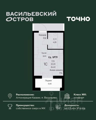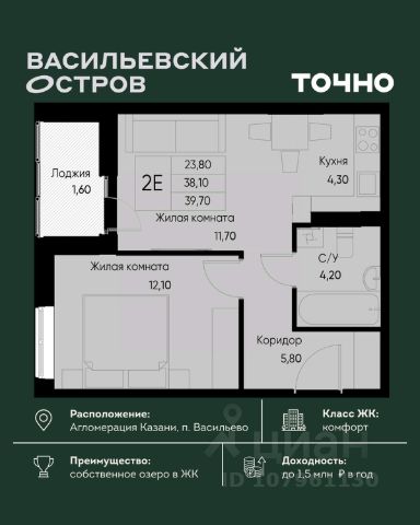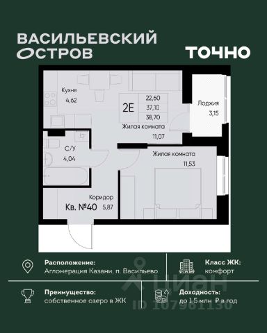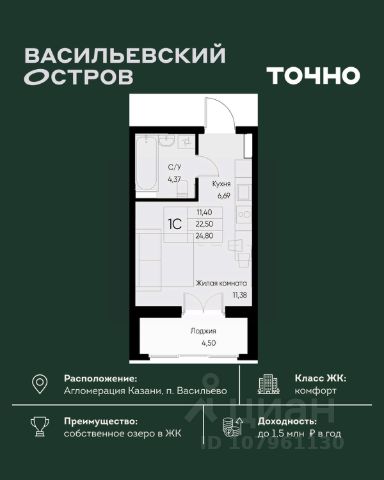 Продаётся уютная однокомнатная квартира площадью 40.9 квадратных метров, расположенная на пятом этаже десятиэтажного монолитного дома 2017 года постройки в живописном Зеленодольском районе, пгт. Васильево, на улице Ленина, дом 17.