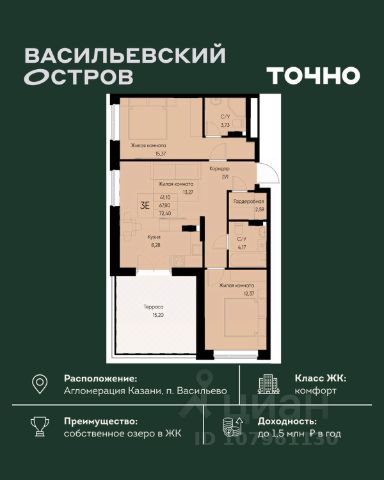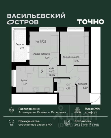 Продаётся уютная однокомнатная квартира площадью 40.9 квадратных метров, расположенная на пятом этаже десятиэтажного монолитного дома 2017 года постройки в живописном Зеленодольском районе, пгт. Васильево, на улице Ленина, дом 17.