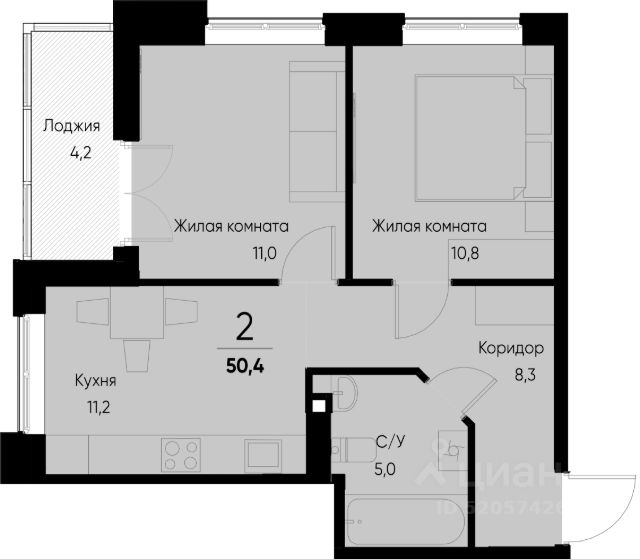 Верхний уровень: 2 просторные жилые комнаты. В каждой комнате по два окна (одна сторона солнечная, другая — теневая, что позволяет наслаждаться прохладой летом и светом зимой).