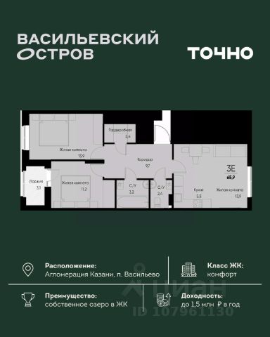 ЖК "Васильевский остров" — масштабный проект ТОЧНО в Казанской агломерации. Просторная территория 88 Га спроектирована для комфортной жизни: озеро с набережной и пляжем, каток, зелёные маршруты. В проекте комплекса — школа на 1 224 места, 2 детских сада на 680 мест, детская и взрослая поликлиники, фитнес-центр с бассейном, термальный комплекс, фермерский рынок, магазины, кафе и рестораны.