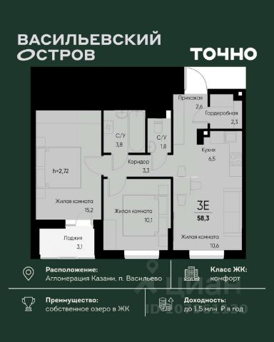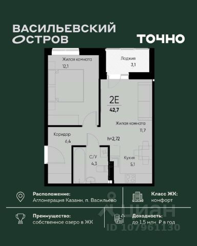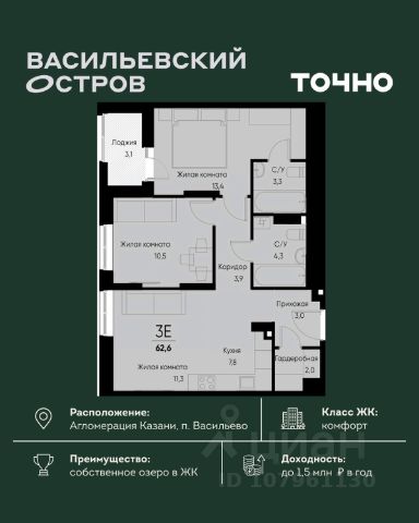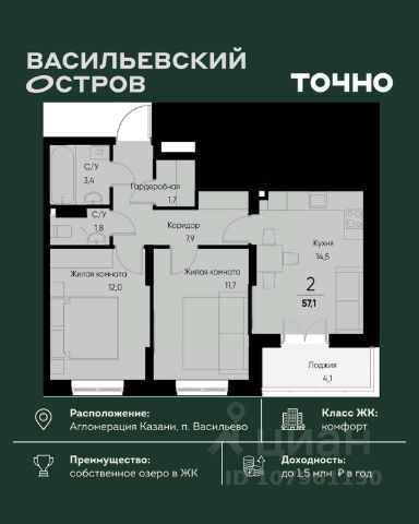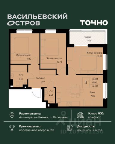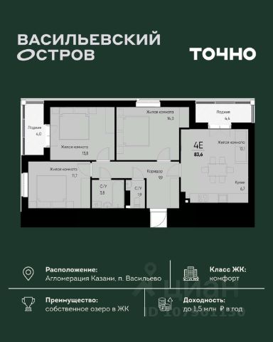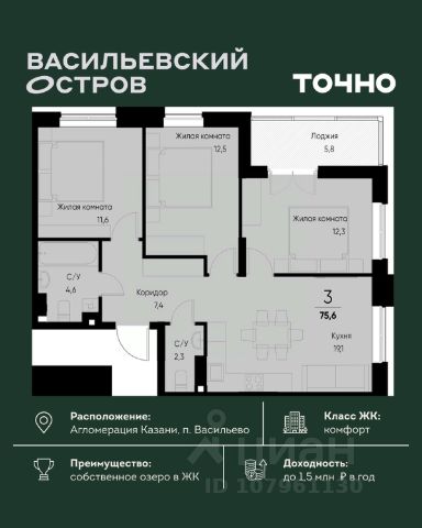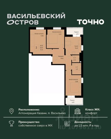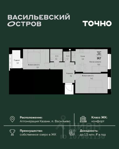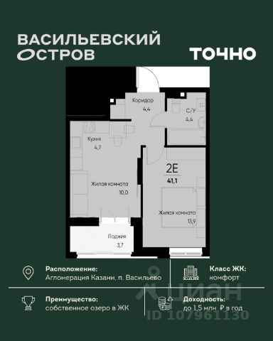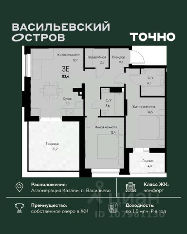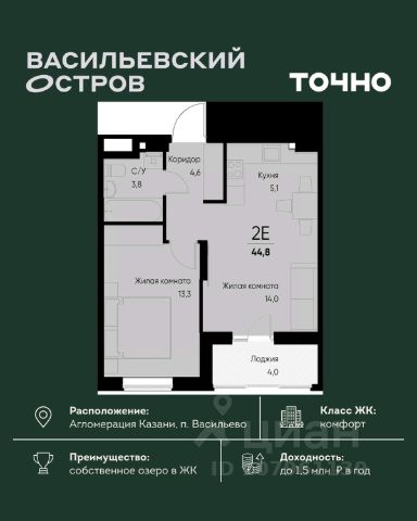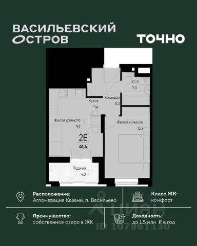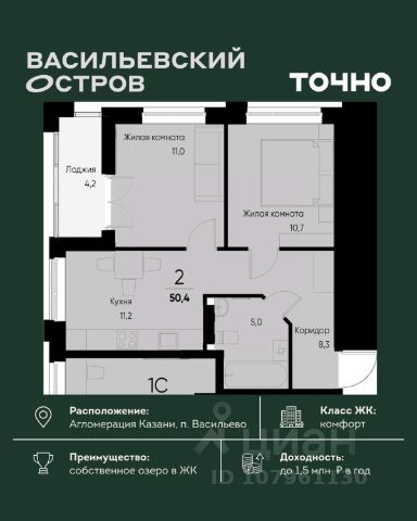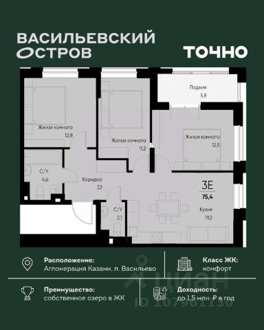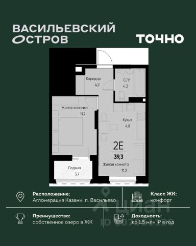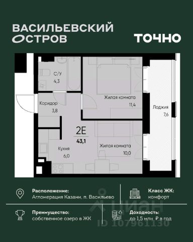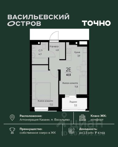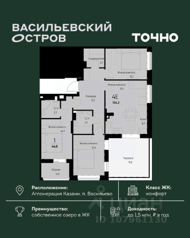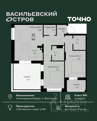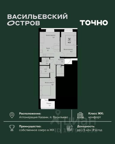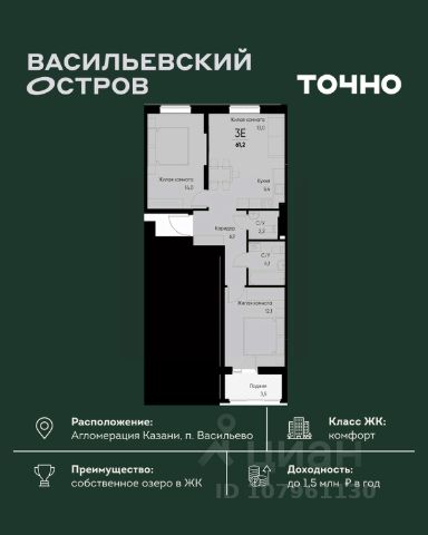 ЖК "Васильевский остров" — масштабный проект ТОЧНО в Казанской агломерации. Просторная территория 88 Га спроектирована для комфортной жизни: озеро с набережной и пляжем, каток, зелёные маршруты. В проекте комплекса — школа на 1 224 места, 2 детских сада на 680 мест, детская и взрослая поликлиники, фитнес-центр с бассейном, термальный комплекс, фермерский рынок, магазины, кафе и рестораны.