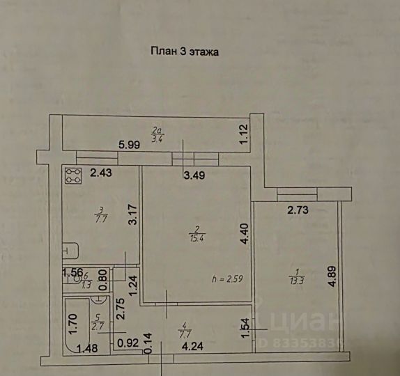Oбщая площaдь: 55.7 кв.м.
