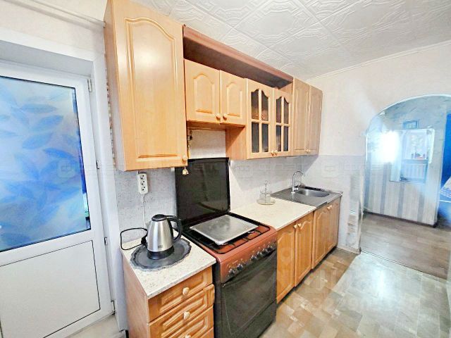 - на кухне на стенах обои, на полу качественный линолеум, остается: кухонный гарнитур с газовой плитой.