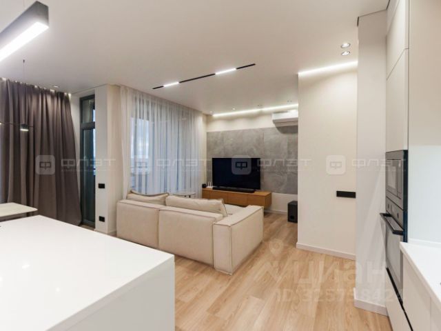Собственник-дизайнер разработала и воплотила максимально эргономичную, стильную, удобную планировку. 2 комфортные спальные комнаты оснащены большим количеством мест хранения. Имеется 2 санузла, большая кухня-гостинная. Много мест хранения. В ремонте импользованы дорогие натуральные материалы, натуральный шпон, натуральный кварц, напольное покрытие-кварц-шпон, высокие межкомнатные двери, шторы на электроприводе. Квартира "до зубов" оснащена техникой, начиная от современных вытяжек, встренных духовок, микроволновок до стиральной, сушильной, посудомоечной машины. Все есть, заезжай и живи.