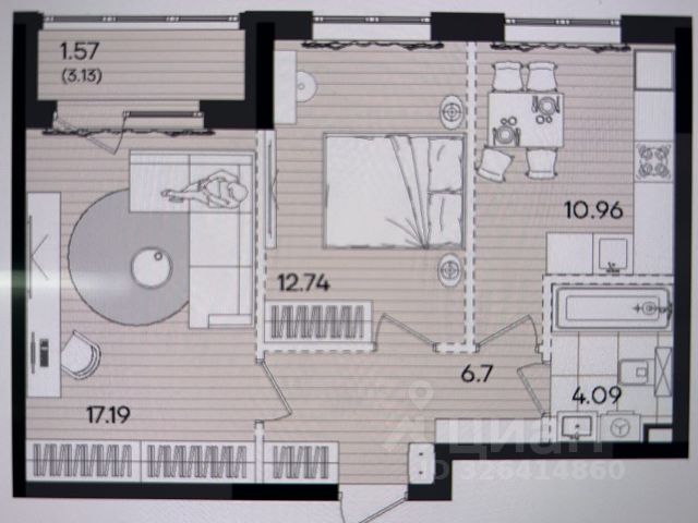 На фото представлен возможный вариант ремонта данной студии.