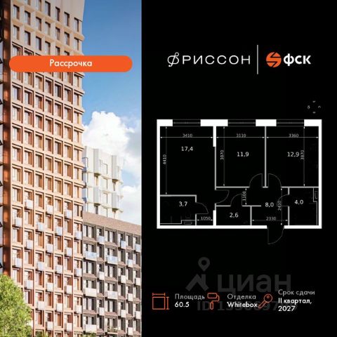 Прямая продажа от застройщика! Жилой Комплекс бизнес-класса. Продаётся 2-к квартира номер 352 общей площадью 47.7 кв.м. на 6-м этаже 14 этажного здания. Отделка Whitebox. Цена с учётом скидки. Особенности квартиры: - Мастер-зона с гардеробной. Просторное место для отдыха и удобного хранения вещей. - Линейная планировка - максимальная функциональность и удобство. - Евроформат - просторное и удобное жилье с отличной планировкой. - Гардеробная - удобство для хранения и организации вещей. Квартира с предчистовой отделкой (White box). Вам не придется заниматься черновыми и трудоёмкими работы, а чистовую отделку и дизайн - сделайте на свой вкус. Информация о комплексе: "Фриссон" - клубный дом бизнес-класса в самом сердце Казани, на улице Даурской. Лейтмотивом проекта стала музыка - её сила, гармония и способность возвышать нас над повседневностью. Подобно нотам, рождающим бесконечное множество мелодий, квартиры в "Фриссоне" создают пространство для творчества, вдохновения и личного ритма жизни. Архитектура клубного дома словно симфония: переменная высота корпусов, выразительные фасады и динамика линий создают ощущение лёгкости и движения. Свет свободно проникает во внутренние дворы и квартиры, наполняя пространство теплом и гармонией. Здесь каждый день звучит по-своему - в унисон с вашим настроением. Транспортная доступность: - 5 мин. на машине до Метро Аметьево - 8 мин. на машине до ТЦ "KazanMall" - 3 мин. пешком до школы - 1 мин. пешком до Детского сада "Фриссон" - 3 мин. до поликлиники Внутренняя инфраструктура: Гармония уюта, ритма и комфорта. Для маленьких жителей комплекса предусмотрены детские площадки с элементами музыкальной тематики, где можно играть, исследовать мир звуков и развивать творческое мышление. На территории "Фриссона" разместится двухэтажный детский сад на 80 мест - современное и безопасное пространство, где дети всегда рядом с родителями. Закрытая территория, концепция "двор без машин" и круглосуточное видеонаблюдение обеспечивают спокойствие и безопасность жителей. В каждом подъезде предусмотрены колясочные, а во дворе - велопарковки, чтобы коляски, велосипеды и самокаты всегда были под рукой. На первых этажах корпусов расположатся кафе и магазины, делающие жизнь максимально удобной. Здесь всё продумано для того, чтобы дом стал местом вдохновения, а двор - пространством, наполненным радостью и энергией жизни.