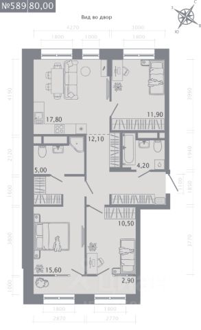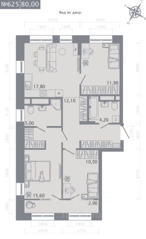 Продаётся 3-комнатная квартира в строящемся доме (Корпус 2), срок сдачи: I-кв. 2029, общей площадью 80 кв.м., на 5 этаже.
