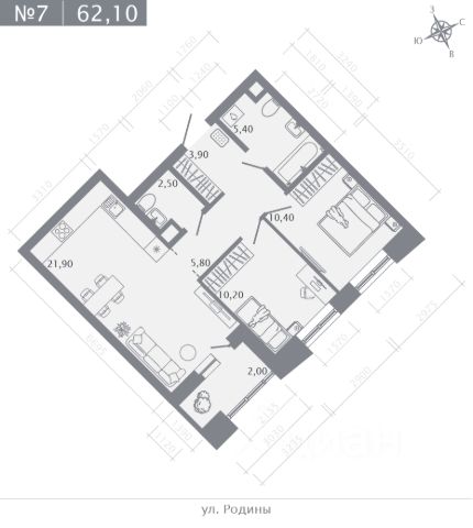 Продаётся 3-комнатная квартира в строящемся доме (Корпус 2), срок сдачи: I-кв. 2029, общей площадью 73 кв.м., на 9 этаже.