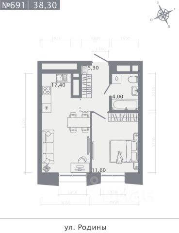 Продаётся 1-комнатная квартира в строящемся доме (Корпус 2), срок сдачи: I-кв. 2029, общей площадью 38.1 кв.м., на 3 этаже.