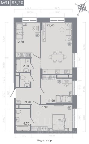 Продаётся 3-комнатная квартира в строящемся доме (Корпус 2), срок сдачи: I-кв. 2029, общей площадью 83.2 кв.м., на 9 этаже.