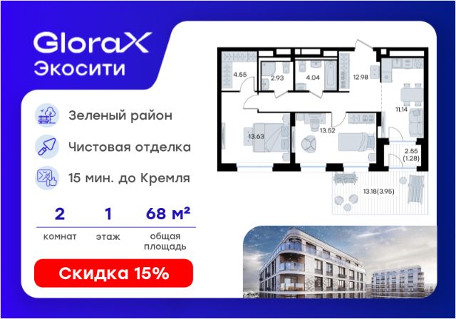 Продается 2-комн. квартира на 8-м этаже в строящемся проекте GloraX Экосити. Общая площадь лота составляет 51,78 кв. м, из которых 22,36 кв. м отведено под жилую и 12,24 кв. м под кухонную зону. Номер квартиры - 192 Преимущества квартиры: • Квартира с полностью чистовой отделкой. В комнатах и коридоре: - натяжной потолок, - стены оклеены обоями под покраску, - полы: ламинат, плинтусы и напольная плитки - установлены межкомнатные двери и подоконники. В санузлах: - на стенах - керамогранитная плитка и/или окраска водостойкой краской - на полу - керамогранитная плитка; - натяжной потолок - сантехника: ванна и экран под ванну/душевой поддон, унитаз, раковины и смесители, монтаж водопровода и канализации - Предусмотрен расширенный пакет системы Умный Дом: бесключевой доступ в подъезд, видеодомофон с функцией Face ID, видеонаблюдение, автоматизированный сбор и передача показаний счётчиков; - Внутренние дворы каждого урбан-блока закрытые, благоустройство по индивидуальному проекту. - На территории квартала предусмотрено строительство детского сада на 360 мест, школы на 1501 место, ДОУ на 2000 мест. - На первых этажах домов запроектированы коммерческие помещения - предусмотрены места для супермаркетов, бытовых услуг, кафе. - Собственный комьюнити-центр для жителей жилого комплекса - бульвар "Река между камней" с плейхабом для детей, амфитеатром, спортивными зонами, аллеей достижений. Всем посетителям будет доступен иммерсивный маршрут и AR-игры. - лесная прогулочная аллея вдоль которой расположатся зоны тихого отдыха, йоги и медитаций - 2 смотровые площадки - специальная зона для выгула собак - В жилом комплексе предусмотрено строительство 2 многоэтажных паркингов на 300 и 360 машиномест. Всем жителям проекта доступен и привычный плоскостной паркинг вокруг территории проекта с возможностью в приложении дома получить информацию о наличии парковочных мест. GloraX Экосити — это совершенство города в первозданной природе. Наполненный возможностями район, в котором вы не выбираете между городом или природой, семьей или работой, отдыхом или спортом, — вы берете всё сразу. Каждая семья, каким бы составом она ни жила, найдет для себя идеальное пространство. Планировочные решения запроектированы с просторной кухней-гостиной, чтобы семья могла комфортно проводить время вместе. В целях безопасности в детских комнатах отсутствуют балконы и лоджии. Квартиры сдаются с современной качественной отделкой, что позволяет после сдачи дома сразу начать жить, избежав долгих самостоятельных ремонтов. Цветовые решения и стиль отделки можно выбрать при покупке квартиры. Цена указана при 100% оплате или стандартной ипотеке. Узнайте подробности в Отделе продаж.