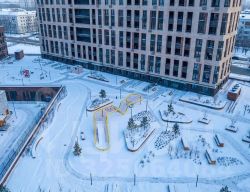 - Внутри комплекса огромный современный парк, размером с футбольное поле. Скамейки с подогревом, и зарядками для гаджетов, спортивные и детские площадки;