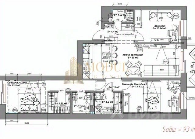 Ремонт выполнен по дизайн проекту с авторским и техническим сопровождением, с использованием дорогих импортных материалов. Напольное покрытие — инженерная доска, потолки из гипсокартона, в санузлах крупноформатный керамогранит от испанских производителей, стол остров со встроенной вытяжкой и подсветкой, приточная вентиляция, умная подсветка в санузле, встроенная аудиосистема, шторы с электрокарнизами, теплый пол и теплая стена в санузлах, вся мебель изготовлена на заказ (по запросу пришлю ссылку на статью на сайте дизайн бюро о нашем ремонте, где всё подробно описано).