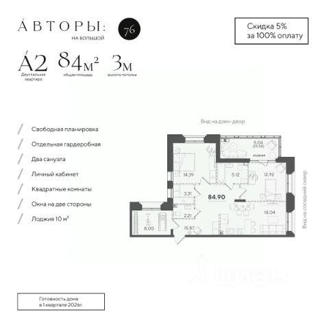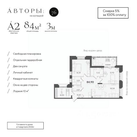 Продается видовая 2-к квартира 15 в клубном доме "Авторы на Большой 76". Квартира с двумя спальнями на 4 этаже площадью 100.65 м², кухней-гостинной площадью 37.53 м², высотой потолков 3 м и двумя санузлами. Окна выходят на две стороны и открывают вид на Волгу и дзен-двор с обильным озеленением. Квартира сдается в свободной планировке, предоставляя полную свободу для ваших предпочтений в дизайне и возможность подстроить пространство под ваши жизненные ценности. Срок сдачи дома — 1-й квартал 2026 года. В клубном доме всего 24 квартиры, включая 4 эксклюзивных пентхауса. Проект "Авторы на Большой" входит в ТОП-3 малоквартирных домов в Казани, а также входит в ТОП-3 ЖК по результатам конкурса форума "Казаныш". Квартиры в домах бизнес-класса "Авторы на Большой" расположены всего в 7-ми минутах от исторического центра Казани и в 2-х минутах от новой соборной мечети, начало строительства которой запланировано на 2025 год. Исключительное местоположение проекта позволяет насладиться видом на Волгу, а концепция клубного дома создаёт атмосферу уединения и спокойствия в самом сердце города. В соответствии с современными стандартами бизнес-класса "Авторы" предлагают особые рещения для вашего комфорта: • Закрытая территория с круглосуточным видеонаблюдением. • Подземный паркинг с электрозаправками, келлеры для хранения, умный въезд с распознаванием номеров. • Натуральные коллекционные материалы в лобби для создания атмосферы премиум-класса. Дзен-двор разработан в концепции "городской гостиной", оснащенной барной сткойкой для уютных встреч и коворкингом для комфортной работы на открытом воздухе. Детская зона вдохновлена тематикой реки и её естественной средой. Площадь двора составляет 1100 м², на которых расположатся более 15 видов декоративных растений и цветников. Компания "Авторы" — девелопер на рынке высококлассной недвижимости Казани. Как самостоятельный застройщик компания работает с 2022 года, а в начале 2024 года успешно сдали свой первый проект ЖК "Дом у озера", где 96% квартир были приняты дольщиками с первого раза и без критичных замечаний. Компания входит в ТОП-5 застройщиков РТ по потребительским качествам ЕРЗ. Сейчас компания ведет строительство проектов на ул. Большая, ул. Петербургская, ул. Годовикова и ул. Астрономическая Подробнее - звоните!