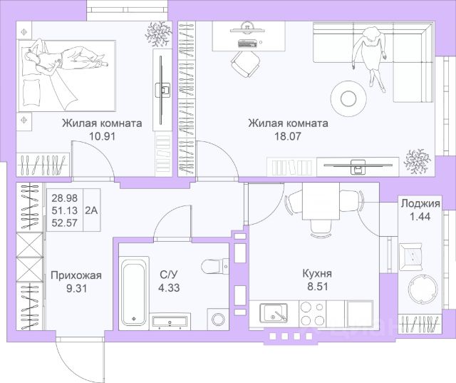 Распашонка - окна смотрят в разные стороны, это важно для проветривания и благоприятного микроклимата в квартире