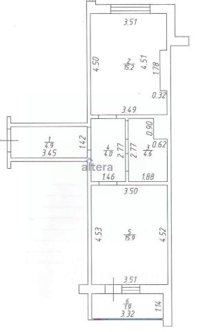 Все комнаты раздельные и правильной формы 17,8 кв м, 12,9 и 11,5 кв м