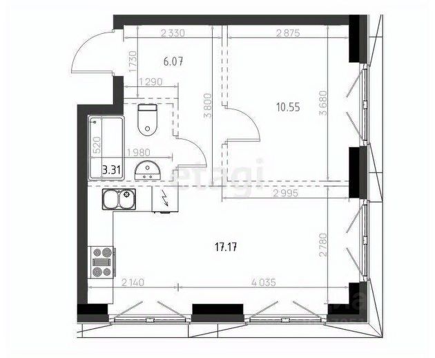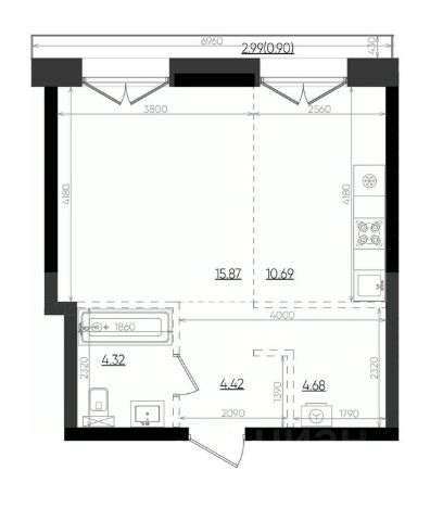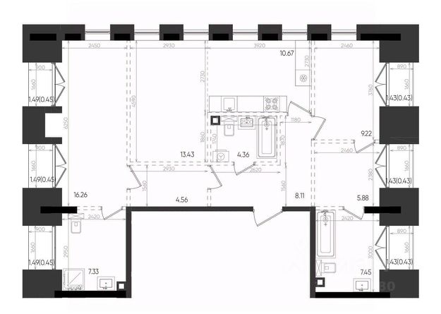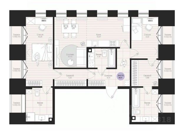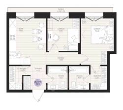 Квартира площадью 74,02 м² со свободной планировкой, панорамные окна с видом на Волгу (сллнечная сторона), высокие потолки, централизованная система кондиционирования, многоуровневая система очистки воды, мастер спальня.